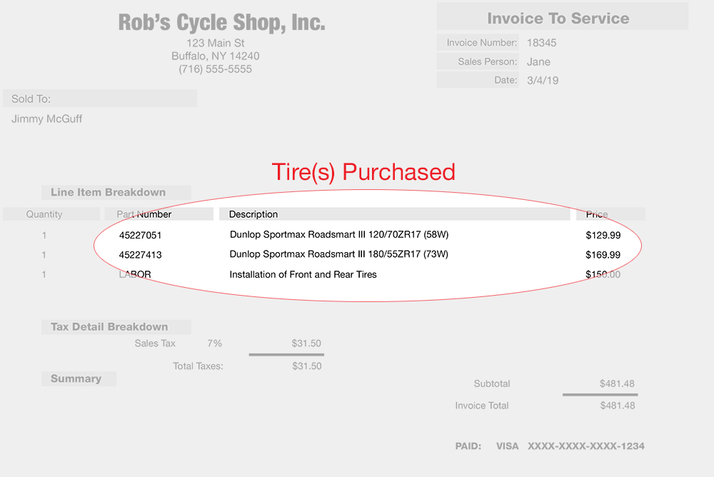 If two rebates are found that have the same amount, look at the “Type” value. This is how you will be paid, so really it’s whichever method you’d prefer. The most common scenario would be if you qualify for both a Dunlop Pro Dealer AND a Harley rebate - there’s really no wrong answer!