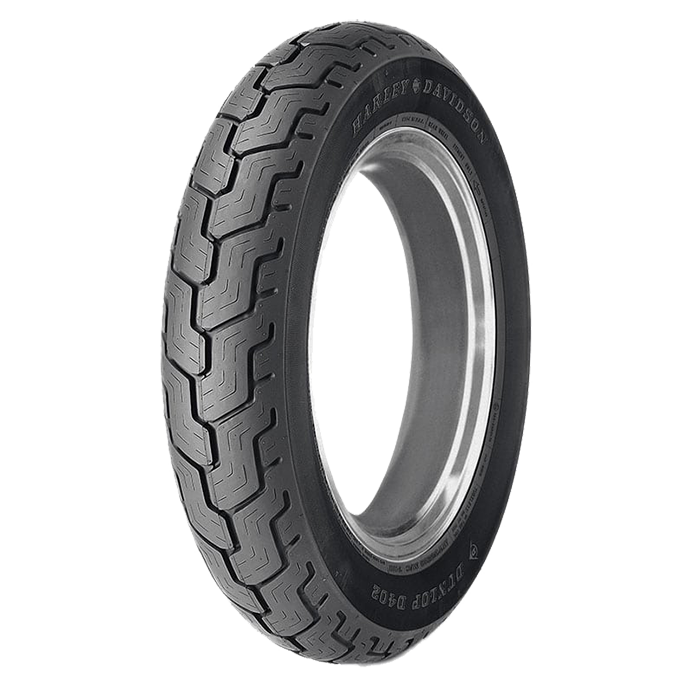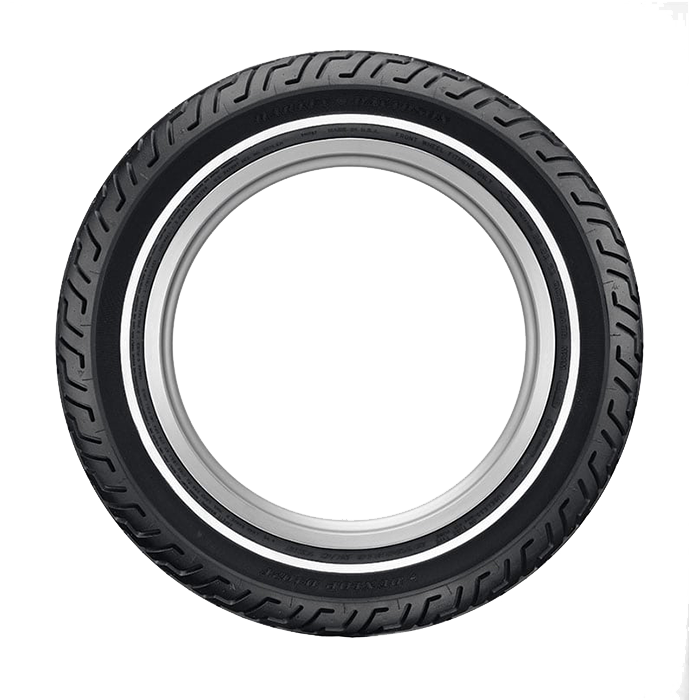 The D402 is a high-mileage touring tire designed for long-distance Harley touring machines. It is available in a variety of sidewall styles.