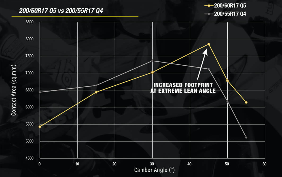 The Dunlop Sportmax Q5 is designed to increase the depth of the Sportmax family lineup to accommodate track-day-level riding like no other Dunlop DOT street tire has before, with even greater overall performance and grip than the Q4.